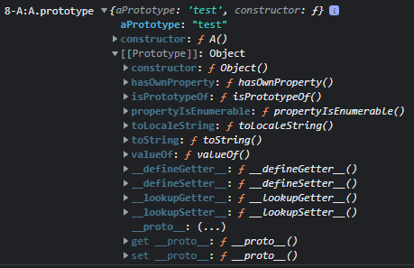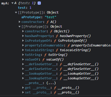 // myA.__proto__ {aPrototype: 'test', constructor: ƒ}