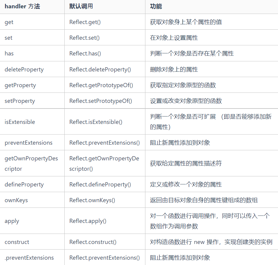 因为 Reflect.get()、Reflect.set() 具有返回值,并且 Proxy 的 handler 的 get、set 也要求有返回值,所以这时使用 Reflect 再合适不过了