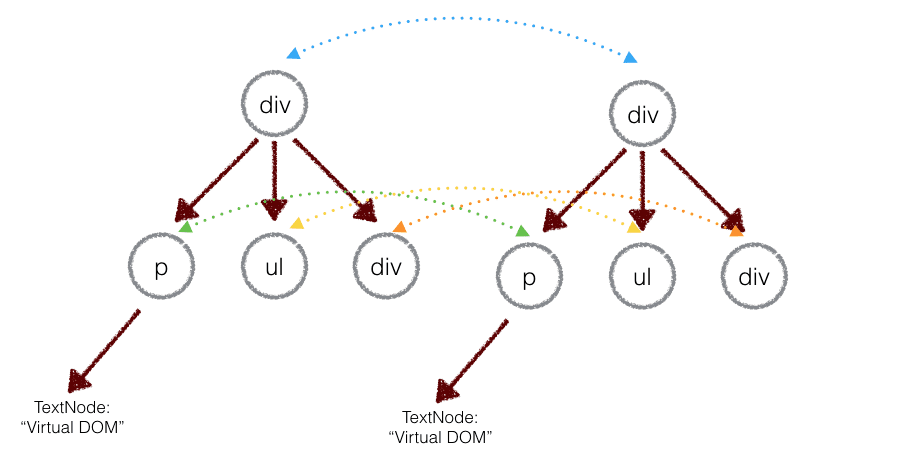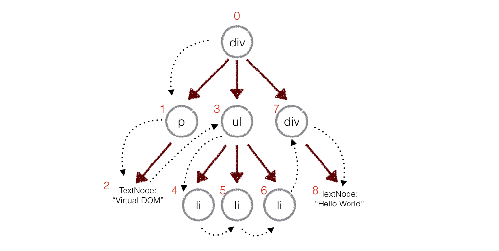 在实际的代码中,会对新旧两棵树进行一个深度优先的遍历,这样每个节点都会有一个唯一的标记: