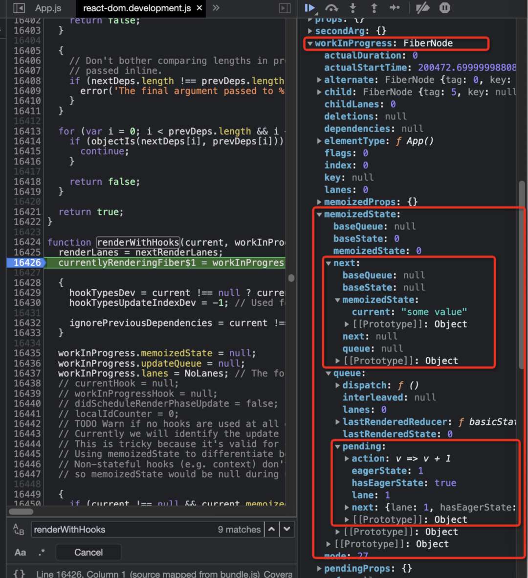 hook 关联比较大的主要是 memoizedState 和 updateQueue 属性。函数组件会将内部用到的所有的 hook 通过单向链表的形式,保存在组件对应 fiber 节点的 memoizedState 属性上。