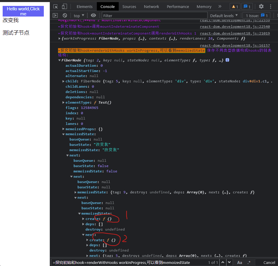 hook 关联比较大的主要是 memoizedState 和 updateQueue 属性。函数组件会将内部用到的所有的 hook 通过单向链表的形式,保存在组件对应 fiber 节点的 memoizedState 属性上。