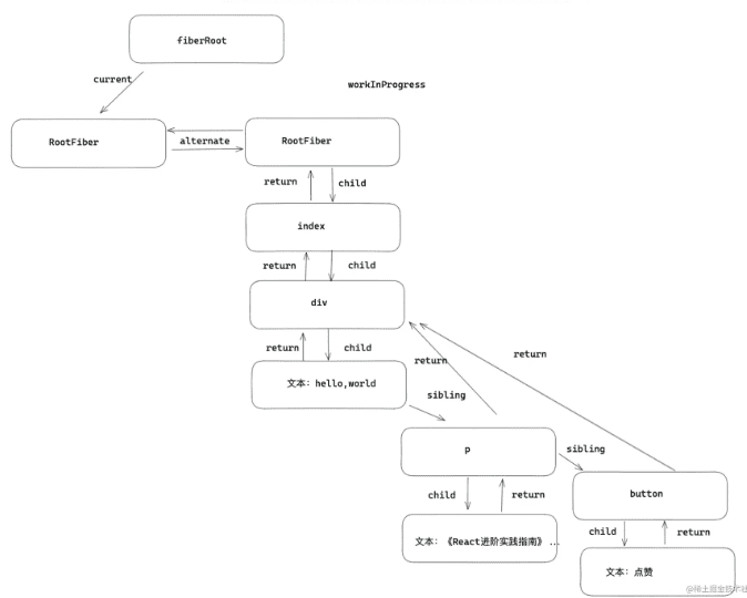 fiberRoot(fiberRoot只能有一个): 首次构建应用, 创建一个 fiberRoot ,整个应用的根节点。