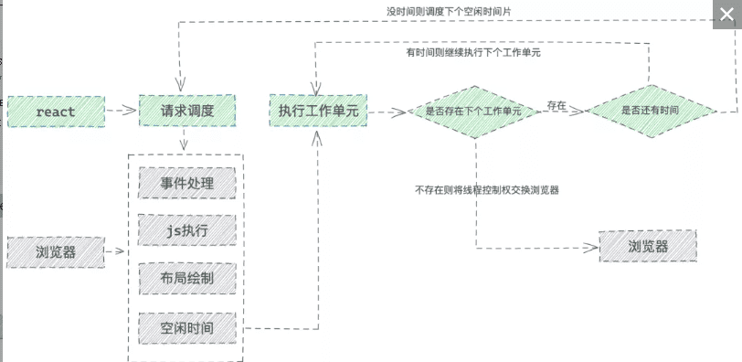 React Fiber的工作调度与浏览器的核心交互流程如下: