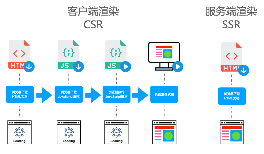 在 SPA 模式下,所有的数据请求和 DOM 渲染都在浏览器端完成,所以当我们第一次访问页面的时候很可能会存在“白屏”等待,